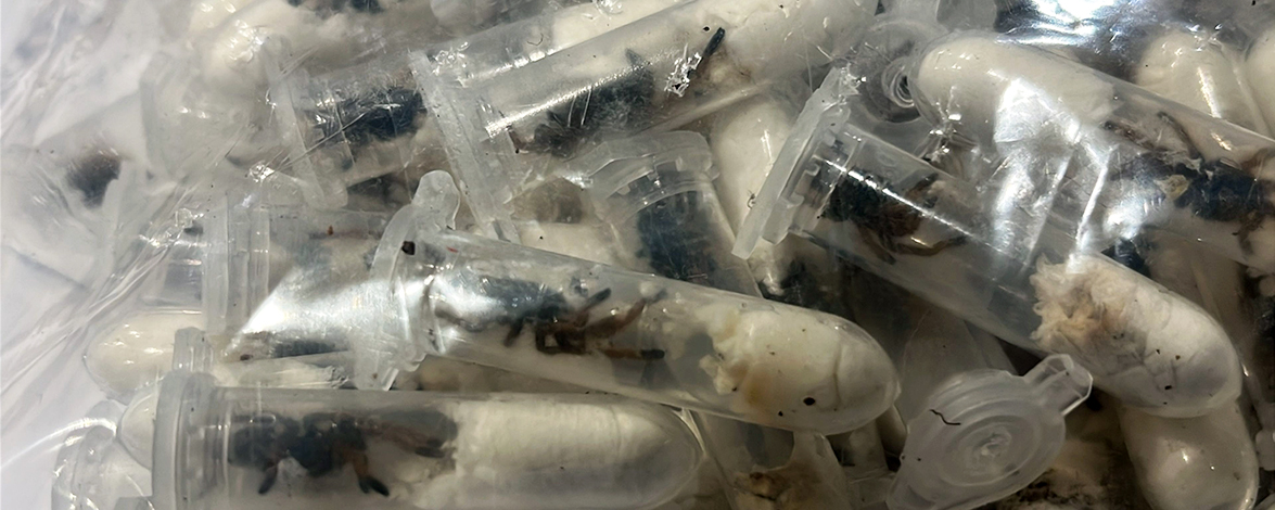 Veel gesmokkelde vogelspinnen waren al dood bij aankomst. De dieren die de reis wel hebben overleefd zijn overgedragen aan professionele verzorgers.