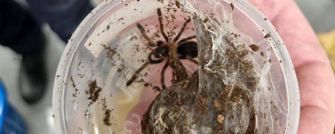 overdedouane.nl - De Douane trof vorige week vrijdag 112 potjes met vogelspinnen aan bij een postbedrijf nabij Schiphol. Dat gebeurde na een melding van het bedrijf zelf. De juiste vergunningen ontbraken en de zending voldeed niet aan