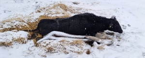 Verwaarloosde koe ingeslapen die wekenlang in sneeuw lag in Stein
