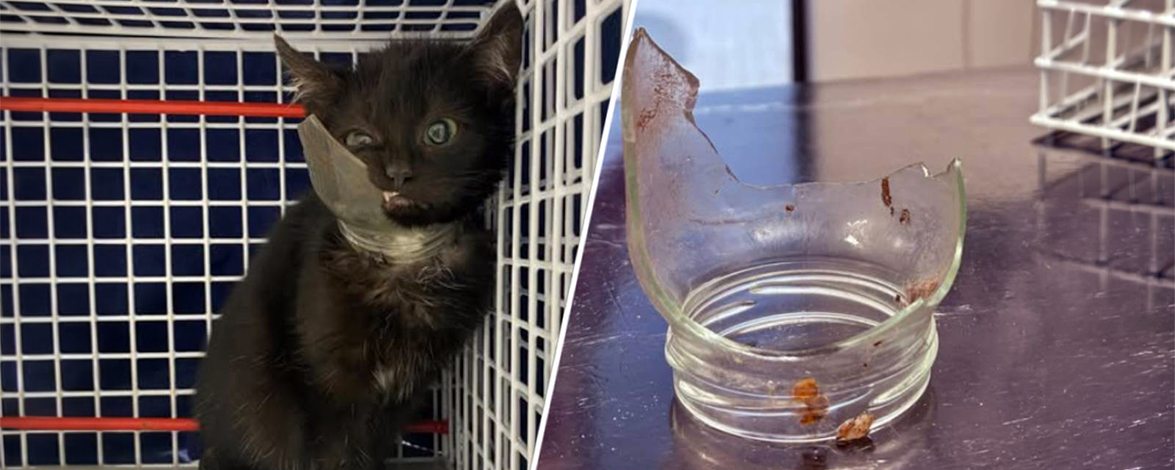 omroepbrabant.nl - Het is een hartverscheurend gezicht: een jonge kitten liep in Eersel dagenlang rond met een kapotte glazen pot om haar nek. De poes vond de pot waarschijnlijk op straat en stak haar kop erin, maar kwam klem te zitten. “Als ze zo nog langer had rondgelopen, was ze doodgegaan”, zegt Alma van Dorenmalen van het dierenasiel in Eindhoven.